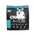 チャーム サーフ&ターフ ドッグは、愛犬に陸と海のたんぱく質を組み合わせてできた美味しさを提供します。Non-GMO(非遺伝子組み換え)原材料を使用し、トウモロコシや小麦、大豆を含まない100%グレインフリーで、人工着色料や香料は使用していません。消化しやすい鶏肉と、ニシンやサーモン、ホワイトフィッシュ、ロブスター、カニなどの様々な種類の魚介類をふんだんに使用して、光沢のある被毛と皮膚の健康に必要な天然の必須アミノ酸やオメガ脂肪酸を提供します。愛犬の全てのニーズを満たし、嗜好性の高くバランスの取れた食事を提供するために作られた、栄養と高品質な原材料が詰まったペットフードです。